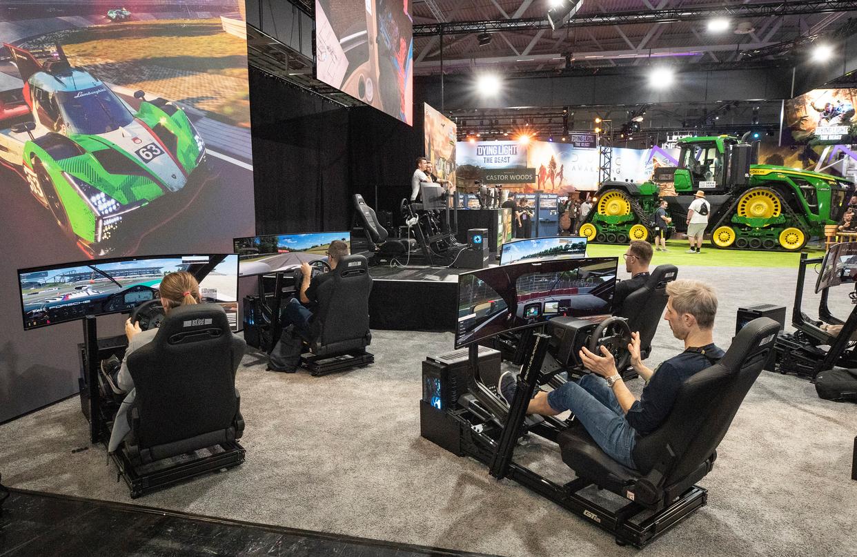 8月20日,在德国科隆,人们在2025年科隆国际游戏展上试玩游戏。新华社记者 张帆 摄