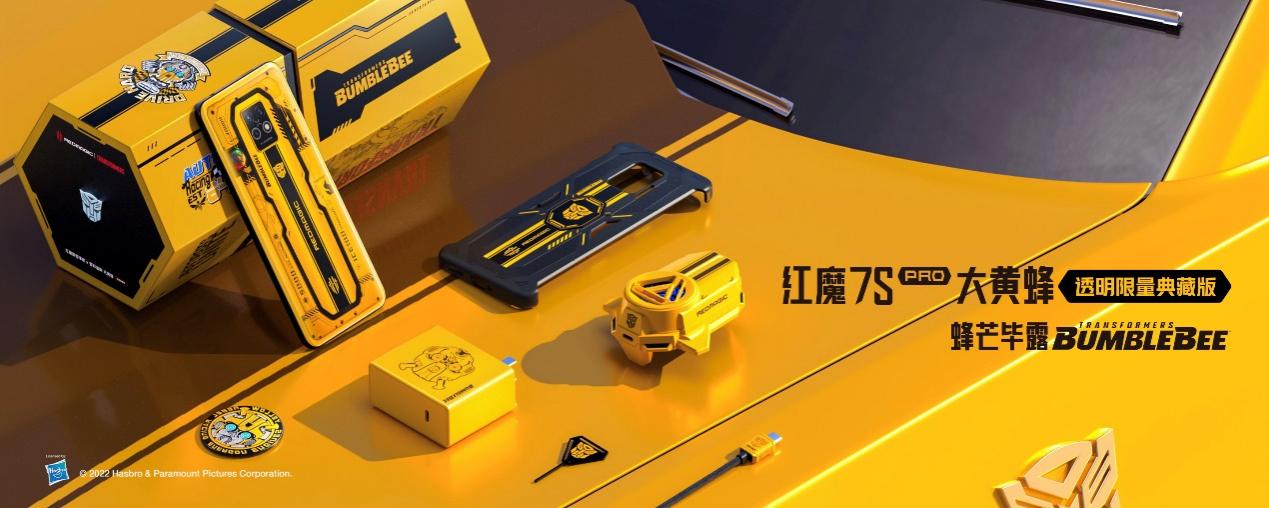 此外,继上半年红魔推出变形金刚擎天柱与霸天虎信仰套装后,这一次备受铁粉期待的红魔7S Pro变形金刚大黄蜂限量典藏套装也“蜂芒毕露”,重磅登场!打开这套豪华的典藏六边形“蜂窝”礼盒,里面包含了内存配置为16+512GB的红魔7S Pro大黄蜂定制版,大黄蜂定制涡轮散热背夹、165W氮化镓充电器,以及导热保护壳等一整套细节感拉满的定制装备。红魔7S Pro大黄蜂定制版采用经典的黄色与红魔标志性的氘锋透明碰撞融合,采用紫光冷调等行业顶尖工艺,打造红魔首款氘锋透明IP联名版。机身内部包含了丰富的变形金刚机械元素以及大黄蜂特别设计的竞技键,对经典的致敬与用心覆盖到每一处细节,同时内置一套定制主题UI。