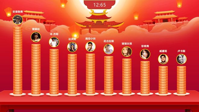 这是大屏幕互动游戏最为广泛的玩法,无论是经典摇一摇、横版摇一摇还是竖版摇一摇,都是基于手机摇动后计算摇动次数的。玩的时候,只需要不断摇晃手机,就能使相应的数据发生变化,大屏幕上的元素或移动或涨高。这些功能又包含多种风格,比如横版摇一摇,就包含赛车等多达十款游戏风格,只需要在后台配置时选择相应的风格,设置好后打开大屏幕就能切换到相应的大屏幕效果。