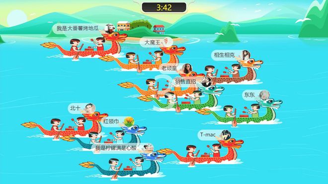 这又是一个有趣的玩法,需要一左一右滑动一下屏幕,对应的具体游戏是赛龙舟,模拟划龙舟时左右两个船桨左右开工,从而推动龙舟向前行进。在游戏开始时会有一个小提示,告诉你必须左一下右一下地滑动屏幕才能驱使龙舟前进。滑动得越快,龙舟越靠前,分数越高。