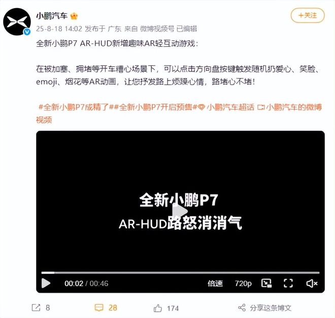 近日,小鹏汽车宣布全新小鹏P7 AR-HUD新增趣味AR轻互动游戏:在被加塞、拥堵等开车糟心场景下,可以点击方向盘按键触发随机扔爱心、笑脸、emoji、烟花等AR动画。